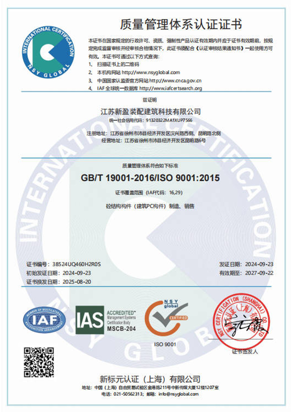 质量管理体系认证证书