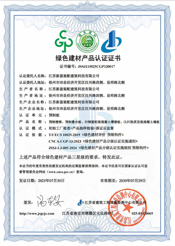 绿色建材产品认证证书